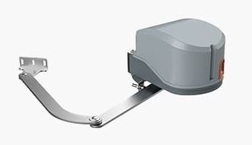 This opener drives the gate leaf through the expansion and contraction of a motor-powered push rod. Typically, you install the motor on the gate frame or above the gate leaf. The push rod connects to the gate leaf via a bracket.